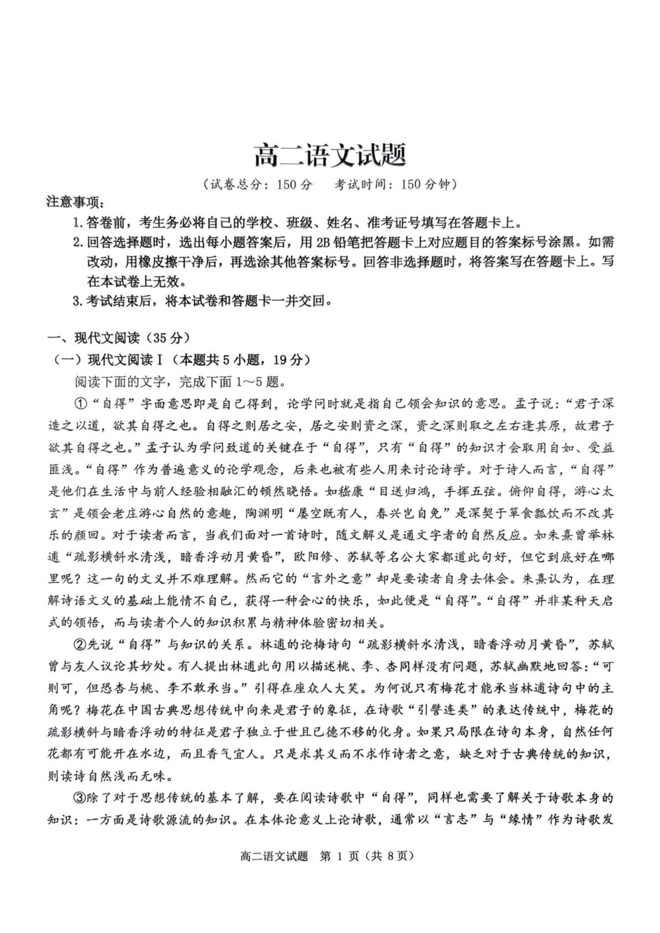 河南省驻马店市环际大联考2024-2025学年高二下学期阶段考试(一)语文试卷(含答案).pdf_第2页