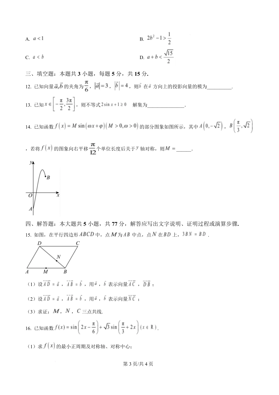 四川省内江市第一中学2024-2025学年高一下学期3月月考数学试题(原卷版).pdf_第3页