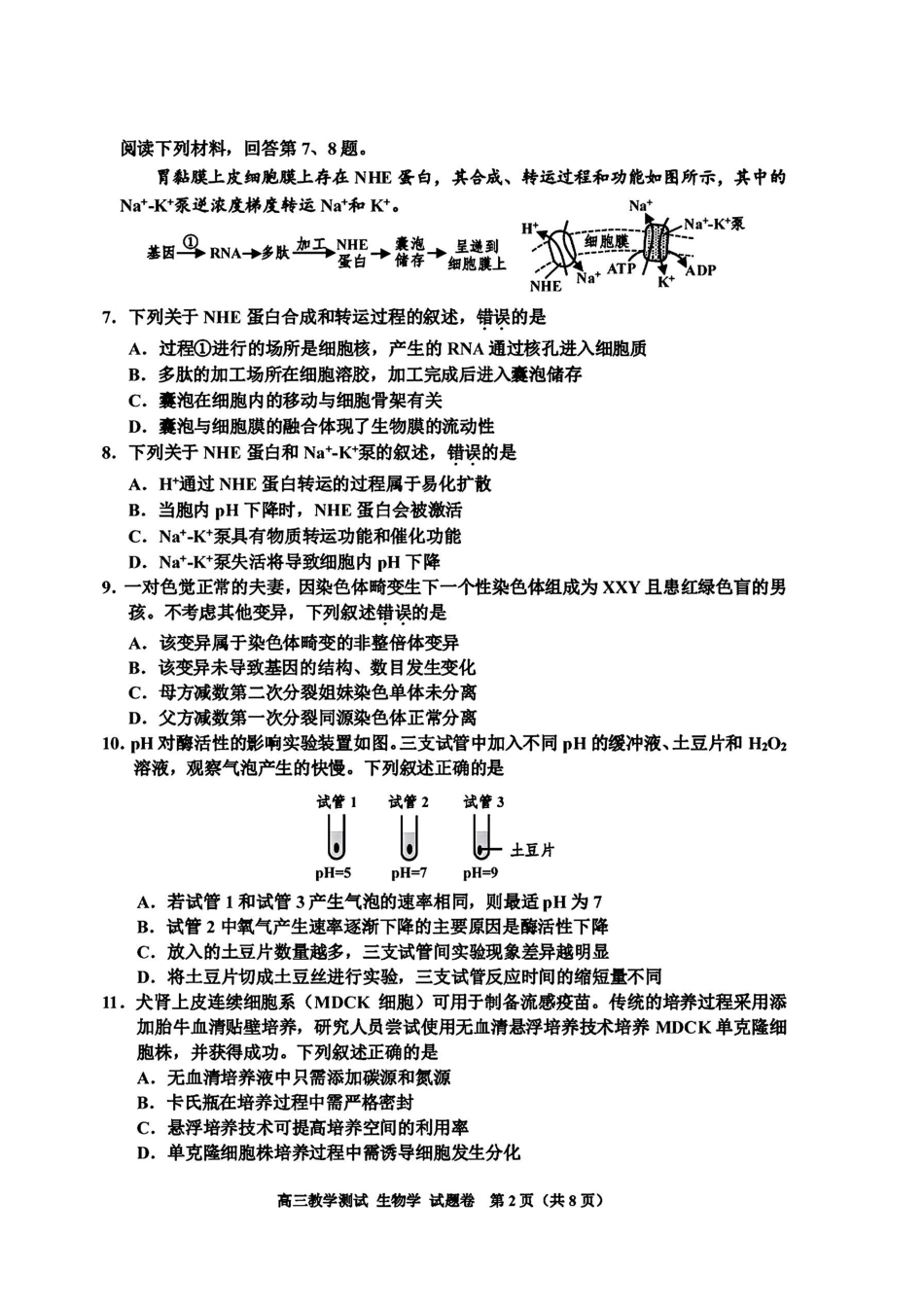 【浙江卷】浙江省嘉兴市2025年4月高三教学测试(嘉兴二模)(4.7-4.9)生物试卷+答案.pdf_第2页