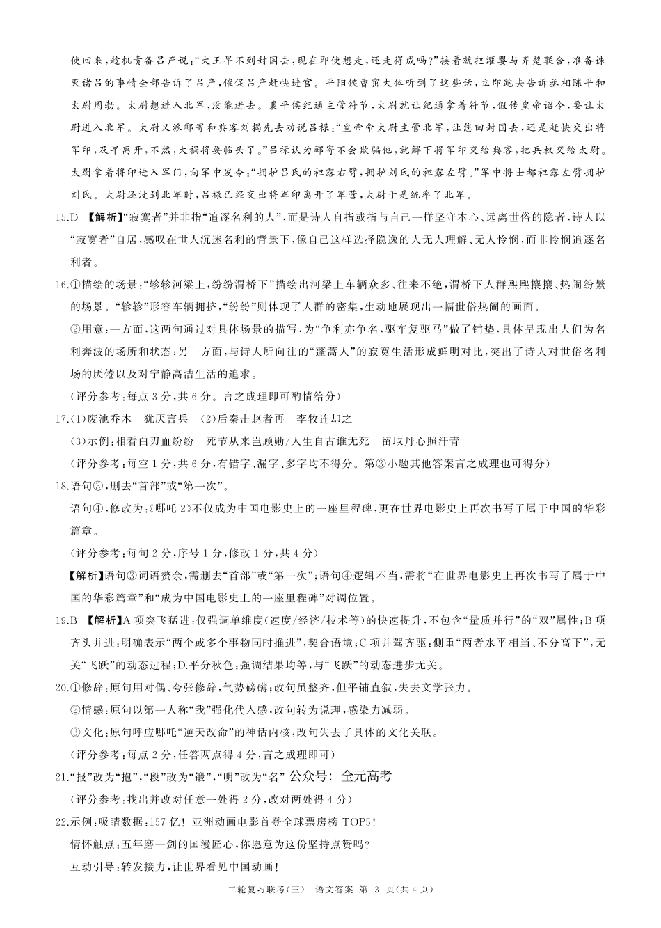 语文试题卷答案辽宁省(鞍山市多校)2025届百师联盟高三下学期二轮复习联考(三)(5.13-5.14).pdf_第3页
