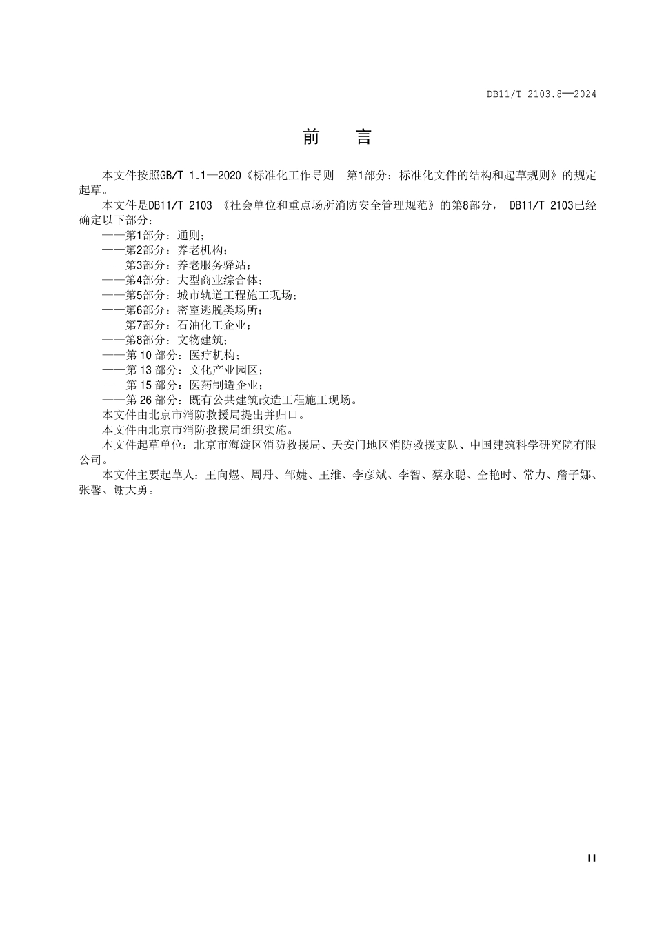 ICS13.220.01CCSC80DB11北京市地方标准DB11/T2103.8—2024社会单位和重点场所消防安全管理规范第8部分:文物建筑Managementspecificationforsocialunitsandkeyplacesoffiresafety—Part8:Culturalrelicbuilding20...
