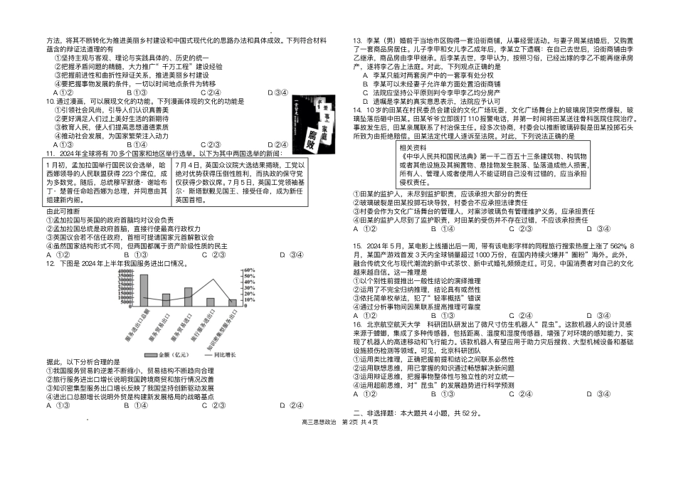 2025届湖南省长沙市雅礼中学高三下学期冲刺模拟训练政治试题(含答案).pdf_第3页