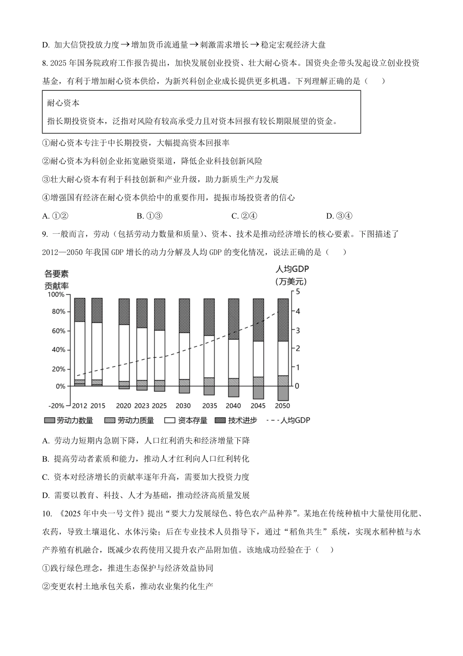 湖南省长沙市雅礼集团八校2024-2025学年高一下学期4月期中联考政治试题(原卷版).pdf_第3页