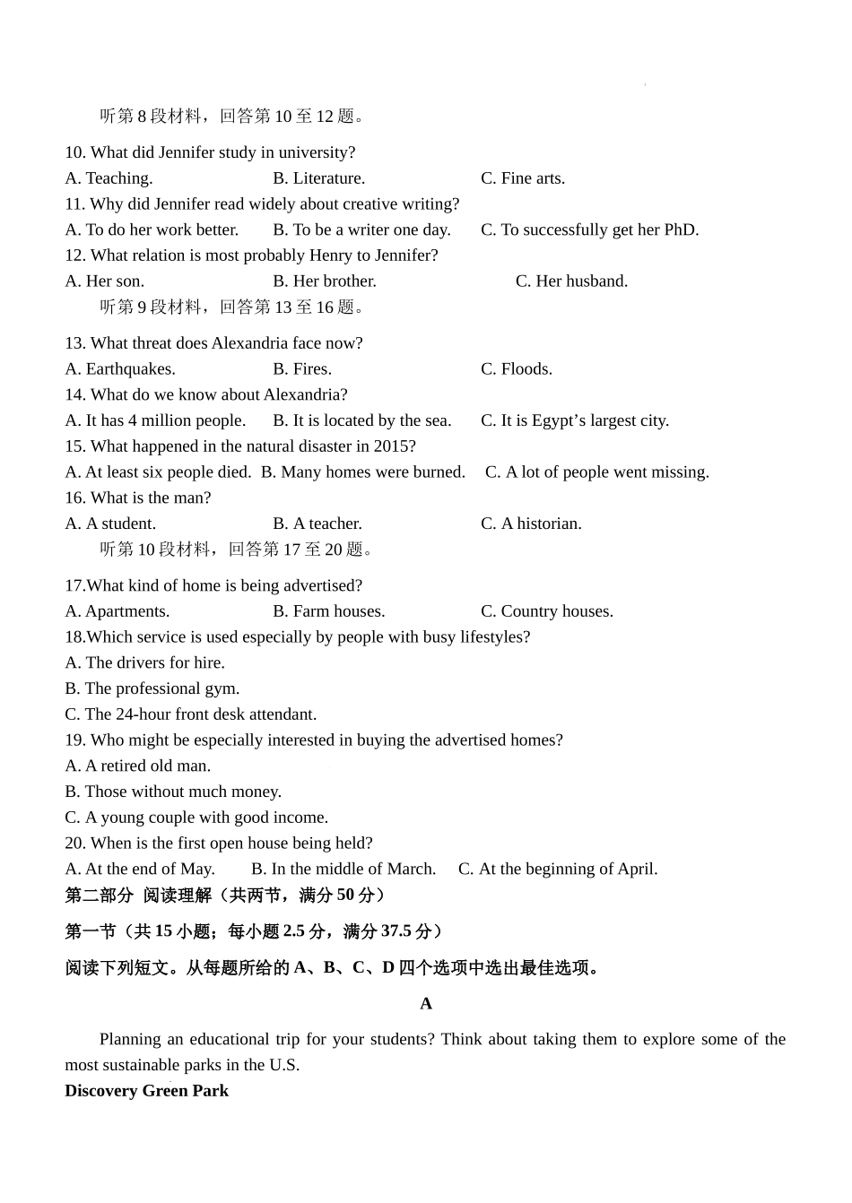 英语试卷含答案河南省实验中学2024-2025学年高三下学期第四次模拟考试(河南实验四模)(5.19-5.20).docx_第2页