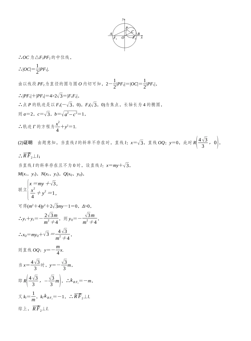 必刷大题17解析几何[分值:60分]1.(13分)已知直线l:y=kx+m与抛物线Γ:y2=8x交于点A,B.(1)若直线l的倾斜角为45°,且过抛物线Γ的焦点F,求直线l的方程;(4分)(2)若⃗OA·⃗OB=0,且km≠0,证明:直线l过定...