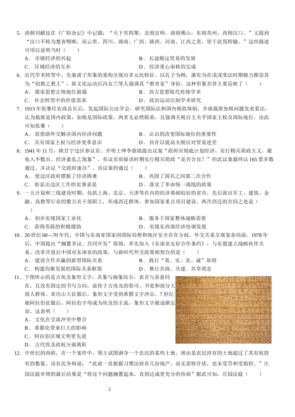 历史试卷含答案湖北省沙市中学2025届高三下学期5月高考模拟预测(5.27-5.28).docx_第2页