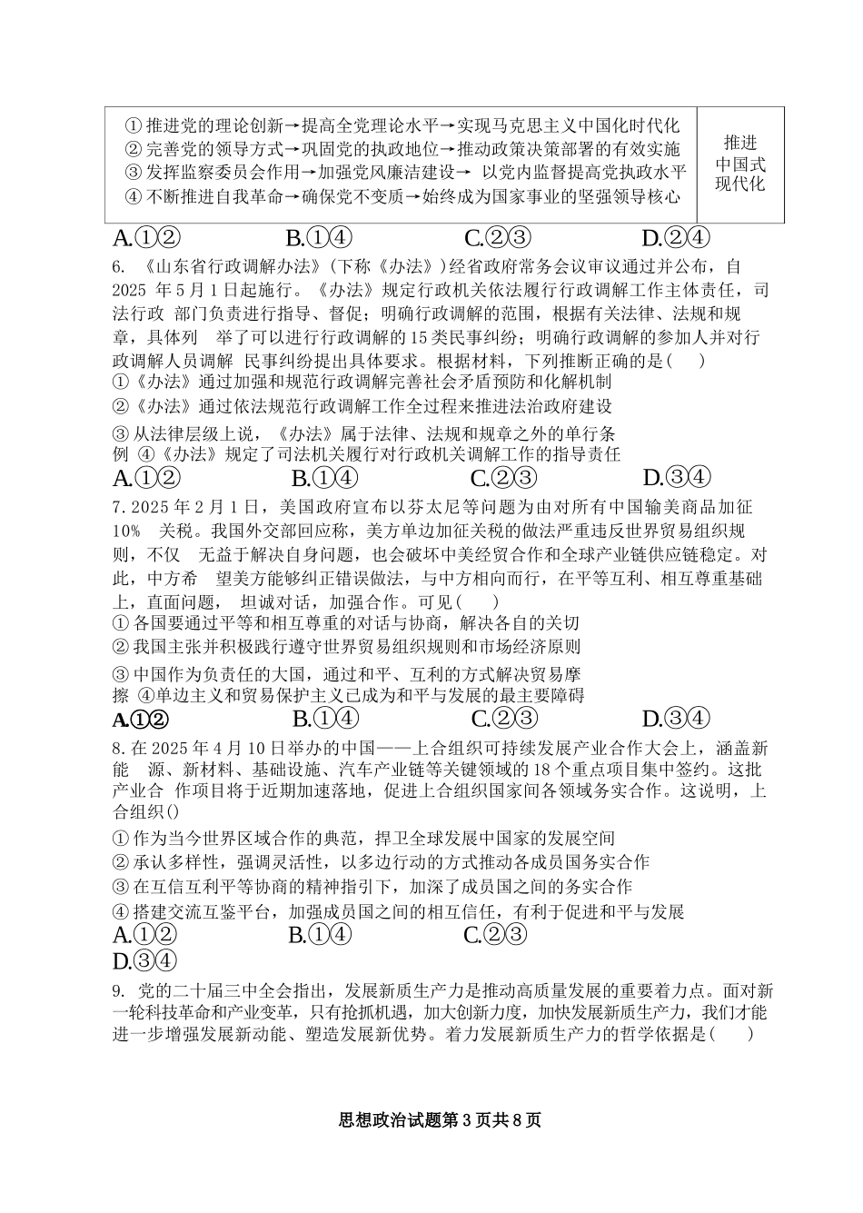 政治试卷 (山东实验二模)含答案山东省山东省实验中学2025届高三6月第二次模拟考试(山实最后一卷)(二模)(6.1-6.2).docx_第3页