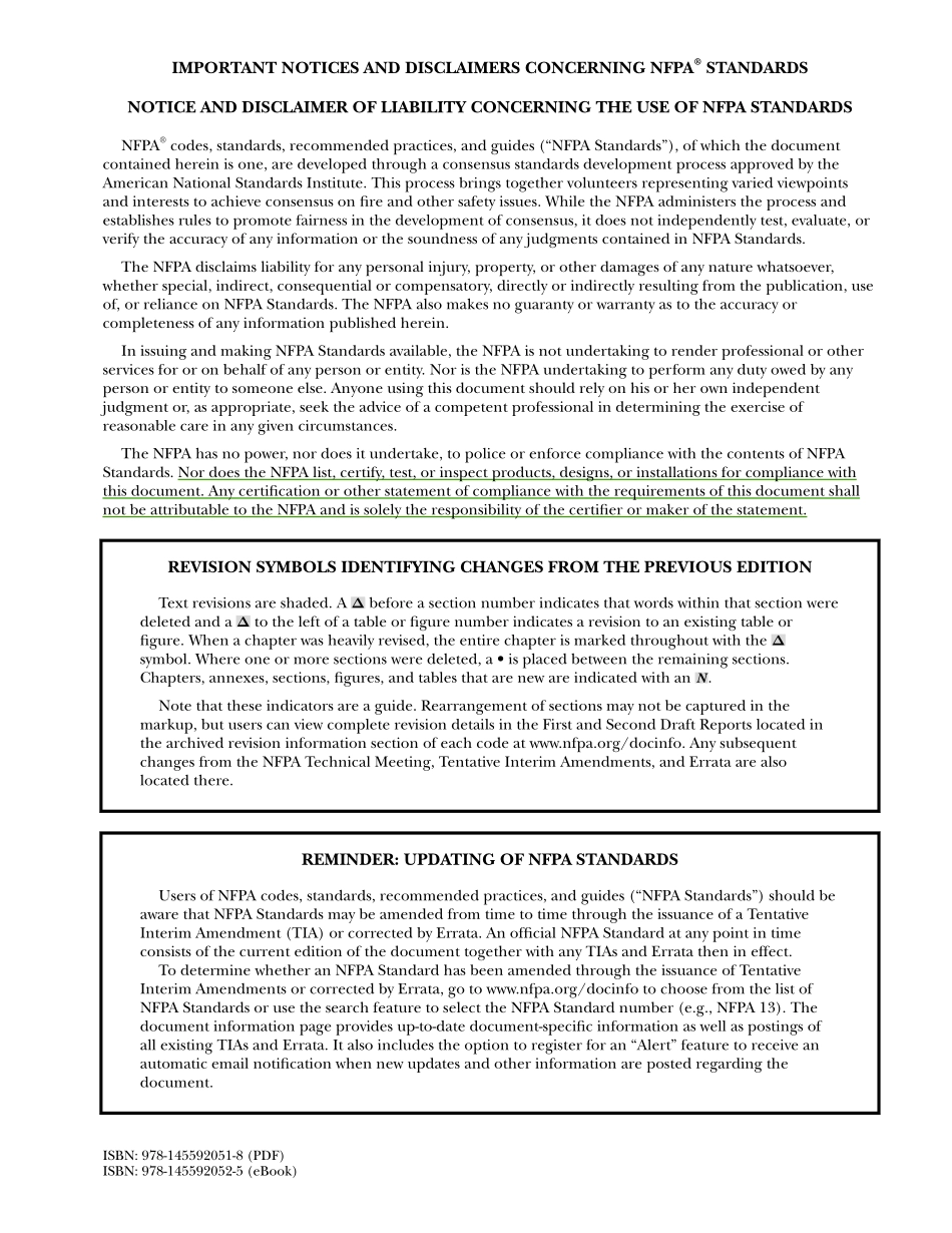 IMPORTANTNOTICESANDDISCLAIMERSCONCERNINGNFPA®STANDARDSNOTICEANDDISCLAIMEROFLIABILITYCONCERNINGTHEUSEOFNFPASTANDARDSNFPA®codes,standards,recommendedpractices,andguides(“NFPAStandards”),ofwhichth...