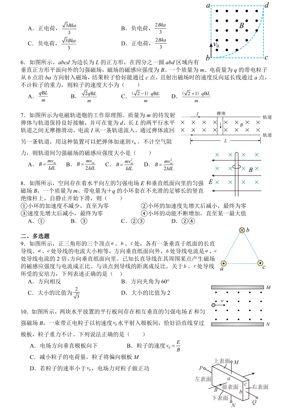河南省驻马店市新蔡县第一高级中学2024-2025学年高二下学期3月月考物理试题(含答案).pdf_第2页