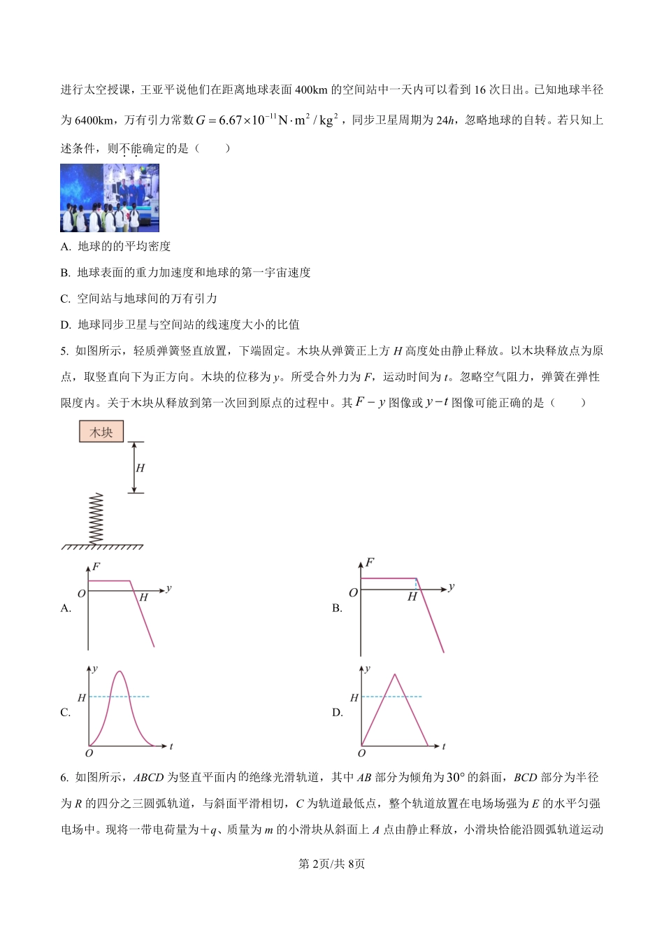 湖南省长沙市岳麓实验中学2024-2025学年高二上学期开学考试物理试题(原卷版).pdf_第2页