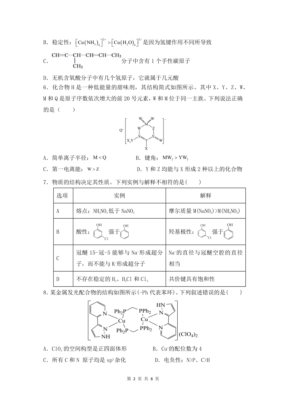 第1页共8页2024-2025学年高二化学下学期月考试卷(考试时间:90分钟试卷满分:100分)出题人:杨辉峰202503可能用到的相对原子质量:H-1O-16Na-23Ti-48Cu-64La-139第Ⅰ卷(选择题共40分)一、选择题:本题共10小...