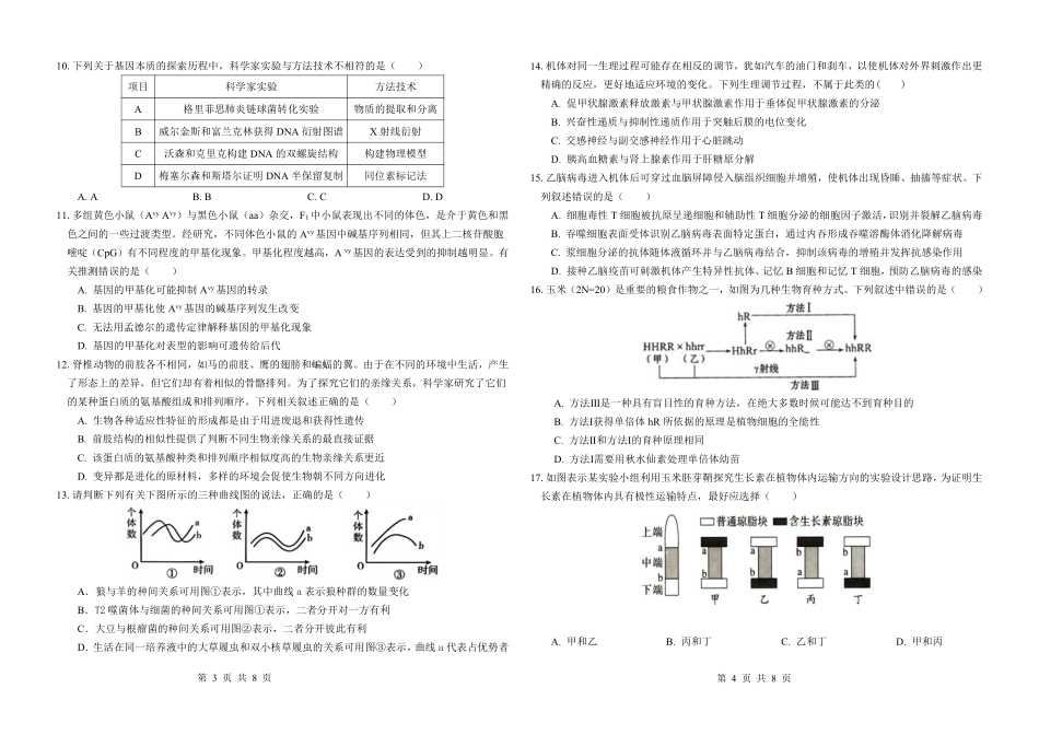 第1页共8页第2页共8页溪一中2024—2025学年下学期高二年级开学考生物学试卷总分:100分考试时间:75分钟命题人:高二生物备课组审题人:高二生物备课组一、单项选择题(本题共20小题,其中1-15题,每小题2分,16-...