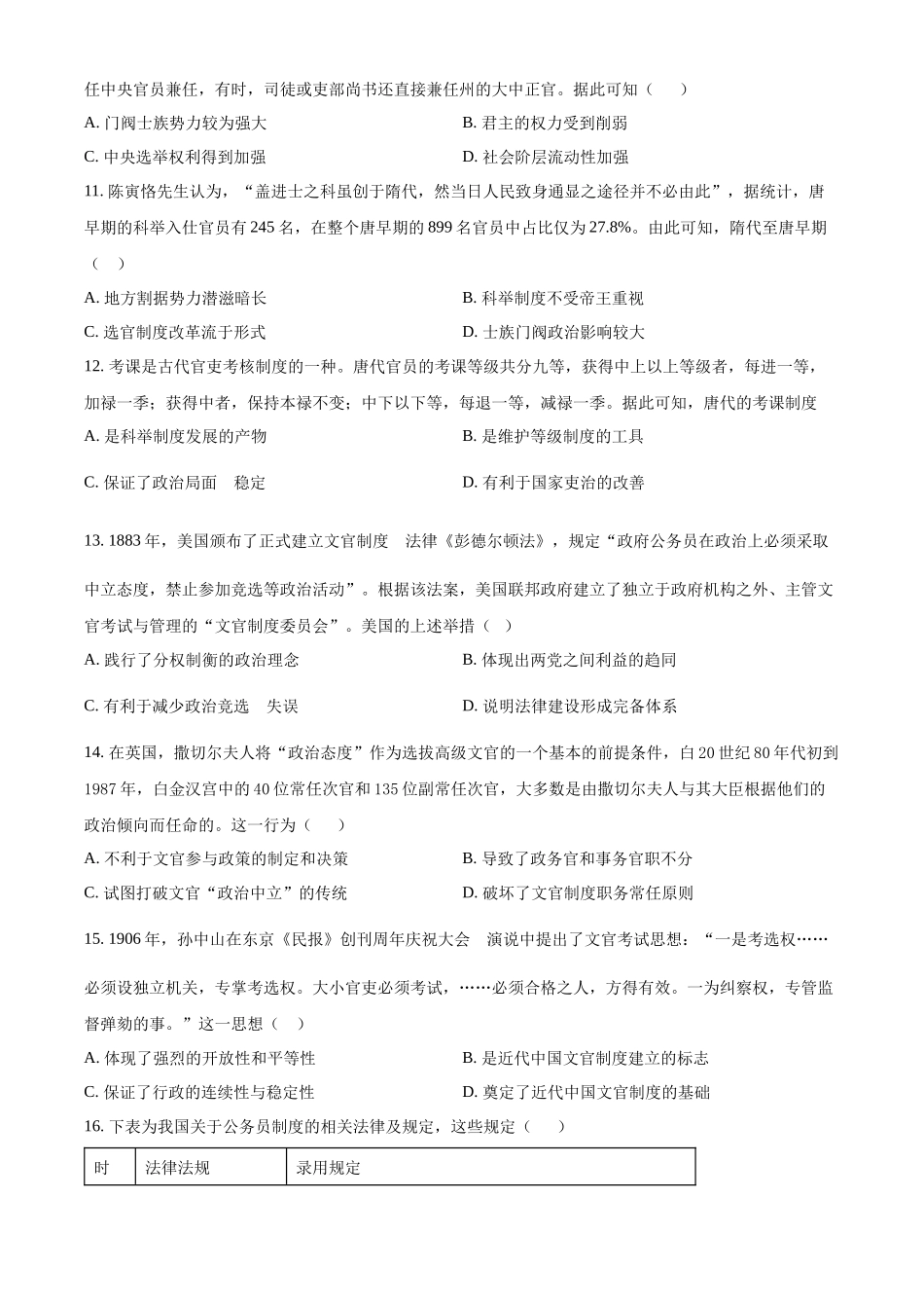 四川省南充市嘉陵第一中学2024-2025学年高二上学期第一次月考历史试题.docx_第2页