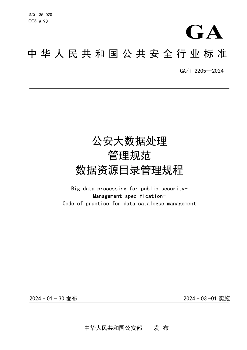 GAT 2205—2024 公安大数据处理 数据资源目录管理规程.pdf_第1页