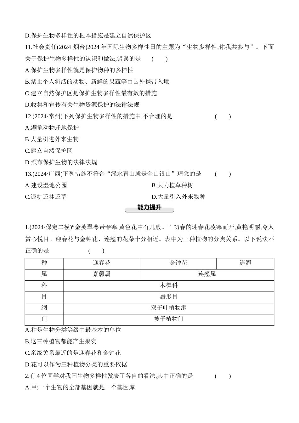 第18讲 生物的分类和生物的多样性  2025年会考生物学专题练习(含答案).docx_第2页