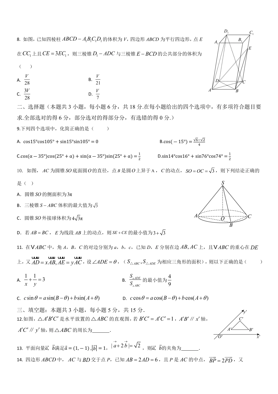 四川省广元市直属普通高中2024-2025学年高一下学期期中教学质量联合检测数学试卷(含答案).pdf_第3页