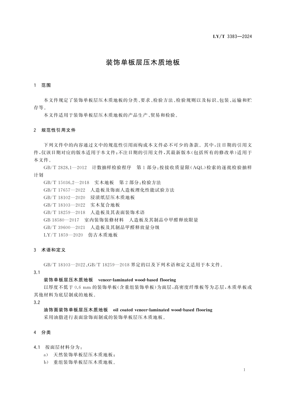 LYT3383-2024 装饰单板层压木质地板.pdf_第1页